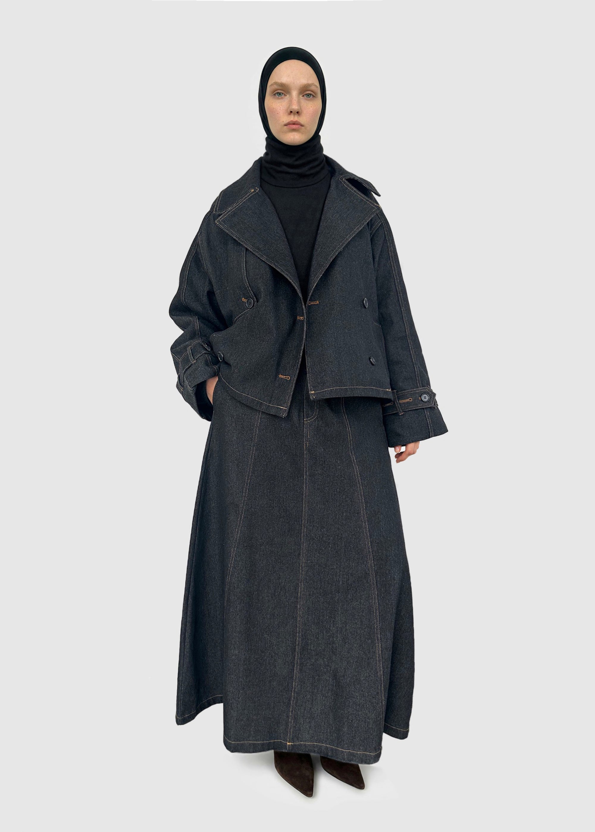 Jupe en jean longue — Gris foncé